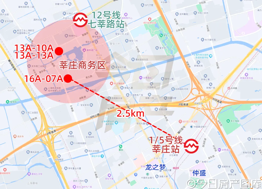 两幅地块地处莘庄商务区核心范围内,直线距离传统的莘庄中心2.5公里。