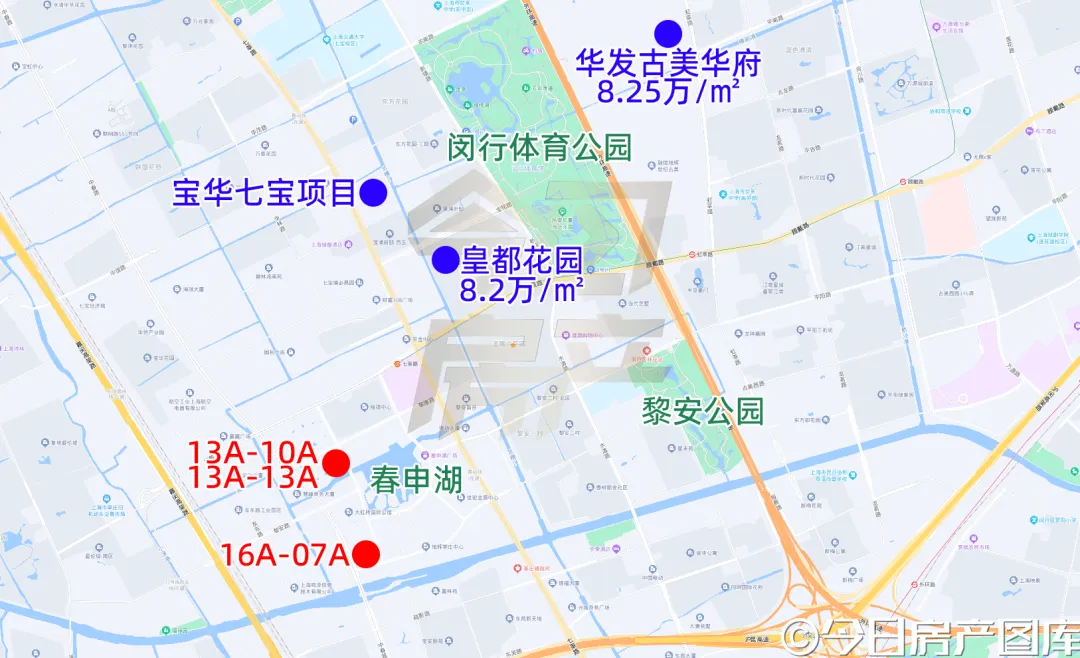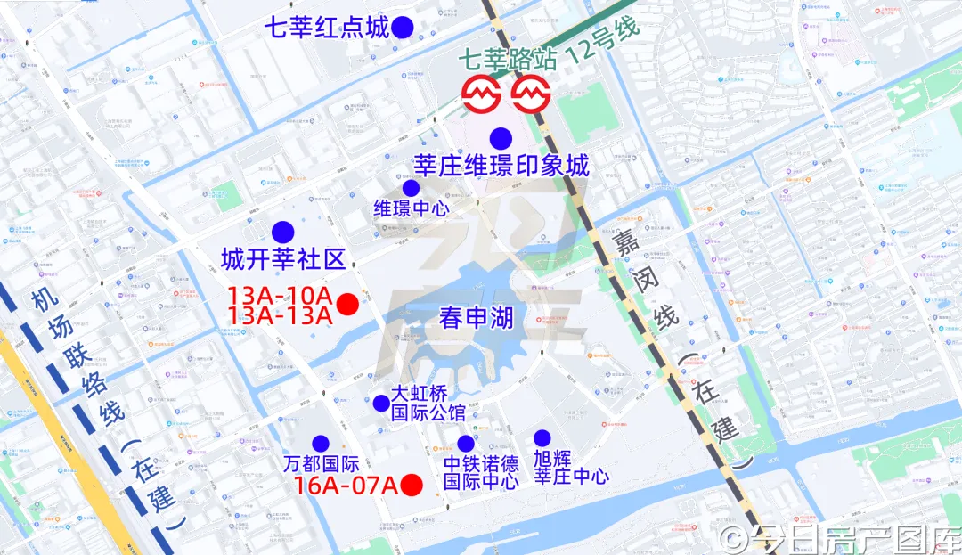 南侧则是春申湖及其支流,还有已经建成的大虹桥国际公馆和在建中的商办。