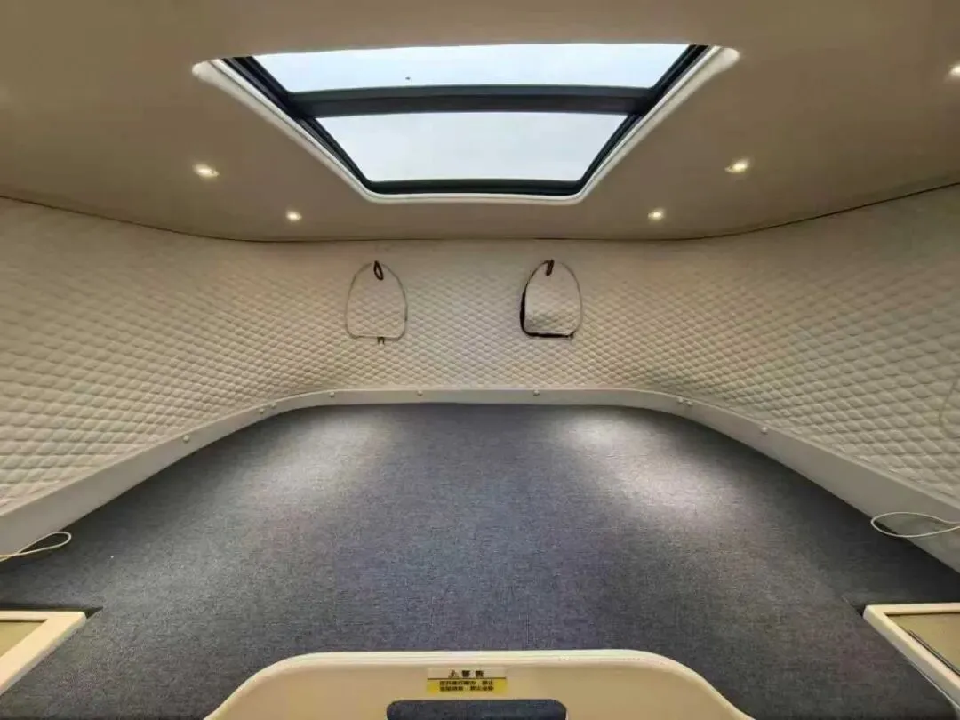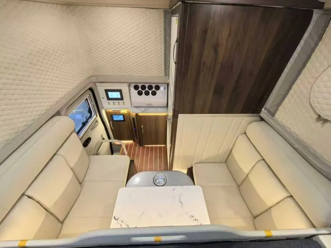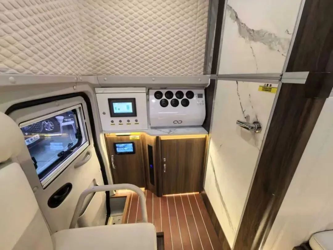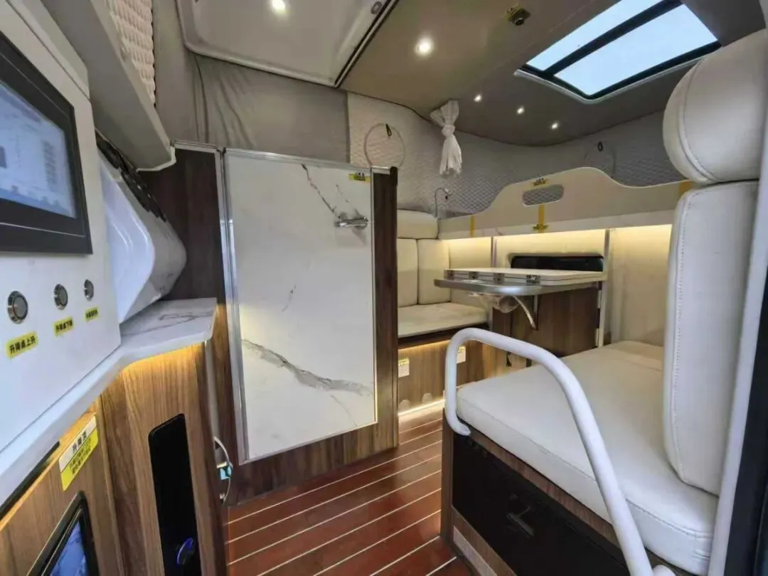 【电器配置】:24V直流空调,30L房车专用冰箱,驻车燃油暖风热水一体机,蓝牙音箱,四路监控,流媒体后视镜,电动升降桌,电动天窗