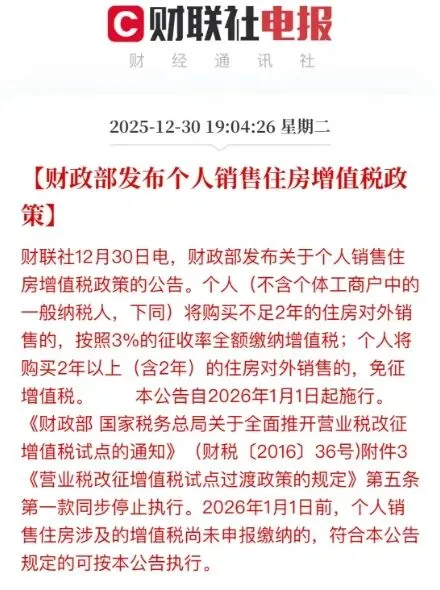 刚刚,财政部发布重磅新政!事关个人销售住房增值税缴纳,直接影响每一位购房者和售房者,赶紧划重点!