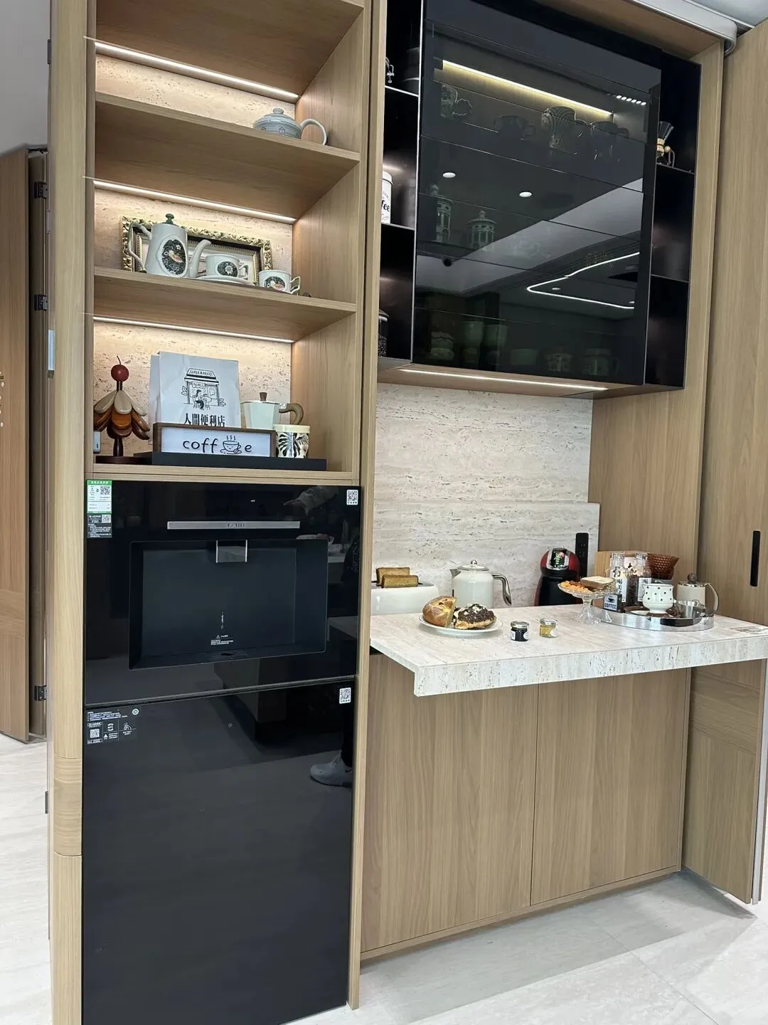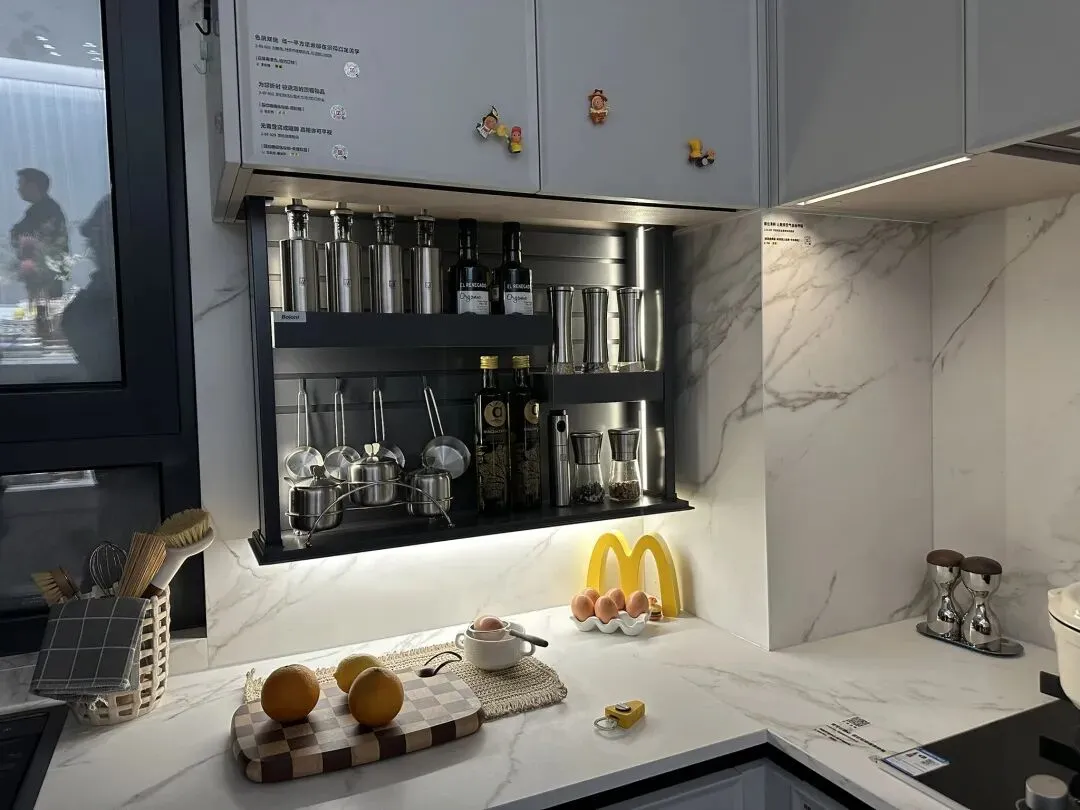 厨房集成系统:通过 “集成洗净中心(水槽下空间利用率从 20% 提升至 85%)、集成净饮中心(热水直饮)、集成烹饪中心(电火灶实现 100% 电气化)”,叠加小海同学语音控制,实现 “解放双手 + 安全高效” 的烹饪体验。