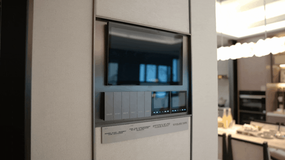 样板间全程搭载中海好房子 Living OS 系统,通过 “15.6 寸自研中控屏(行业最大自产中控屏,首创 BIM+IoT 融合)+ 小海同学 AI 管家 + 小海智家 APP” 三大入口,实现技术与生活的无缝衔接: