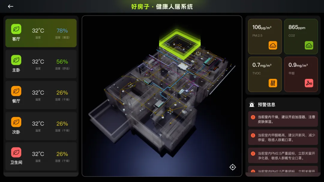 主动服务:全屋体检系统动态显示 90 个在线设备状态,空调内机故障时自动告警并弹出 “一键报修”;净水器滤芯、石材养护等维保周期提前提醒,实现 “服务跑在问题前”。