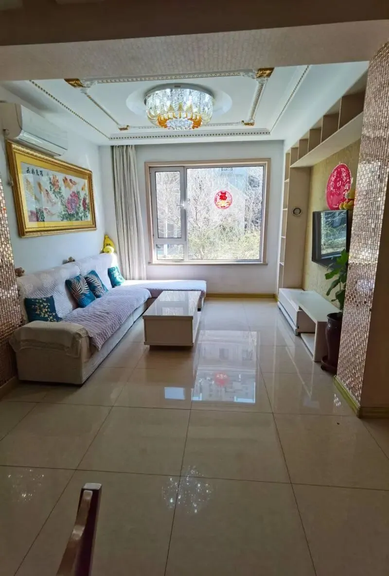 临近34中学区,金海湾一期2楼88.75平,两室两厅,南北通透,赠送50平大平台(烧烤 铁锅炖 绿植任意发挥),豪华装修,欲购从速