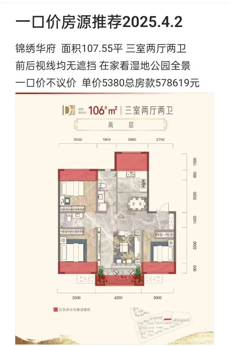 锦绣华府特惠房源仅此一套! 找我免佣金车接车送看房速度,蕾蕾