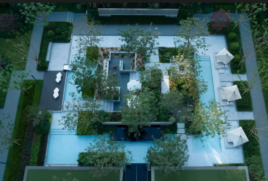 1000㎡会所庭院、8000㎡中心庭院、1000㎡水景,儿童戏水池、亲水下沉卡座、漂浮躺椅、亲水落日吧全部配齐;