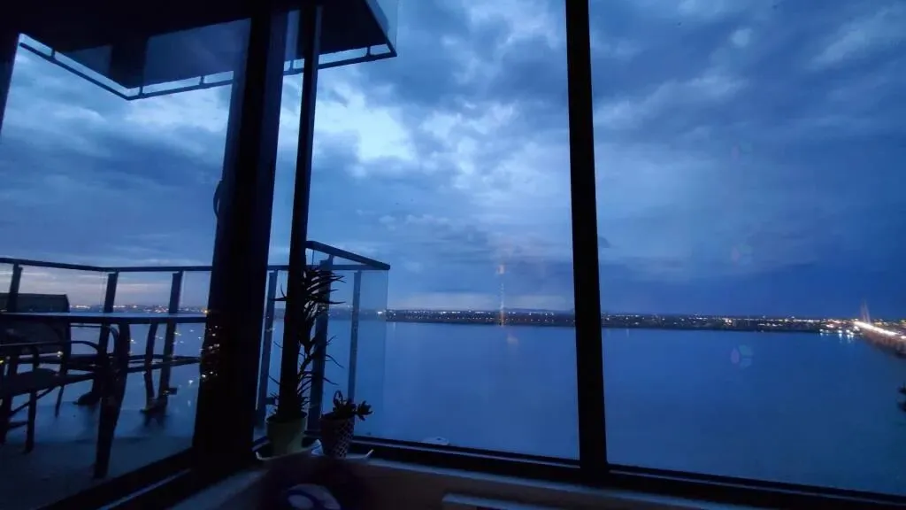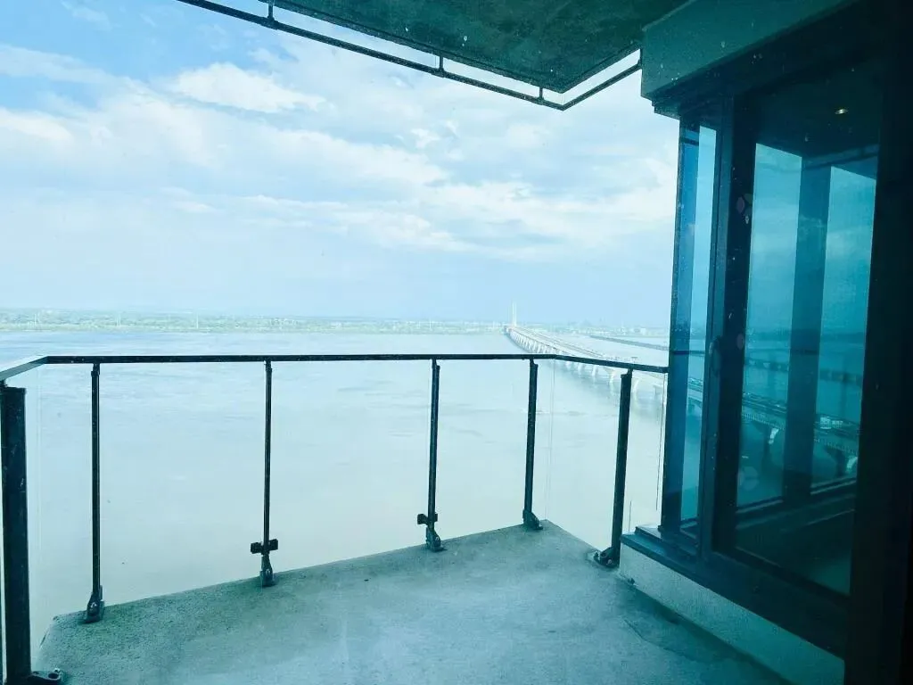 宽敞明亮的起居空间,搭配落地窗设计,引入自然光线,同时可欣赏河景与城市风光;