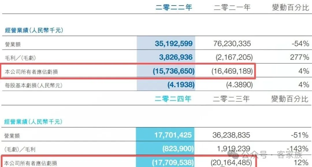 其实,富力地产从2021年就开始亏损,2021年至2024年,富力地产亏损分别为:164.69亿、157.37亿、201.64、177.09亿元。