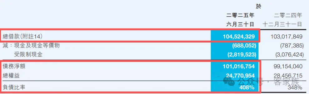 截至2025年6月30日,富力地产的借款总额为1045.2亿元,其中一年内到期的借款为975.9亿元、一年至五年内到期的借款为48.7亿元。