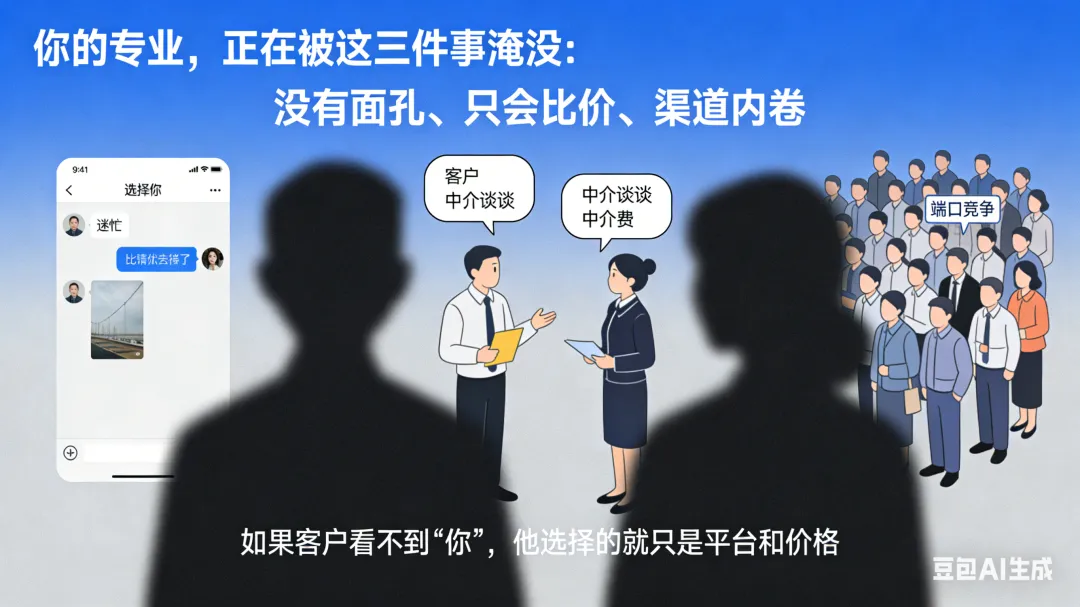 🔸 没有面孔:客户加你微信,却找不到 “选择你” 的理由。🔸 只会比价:你懂板块、懂政策,但客户只和你谈中介费。🔸 渠道内卷:在越来越贵的端口,和无数人抢同一批客户。
