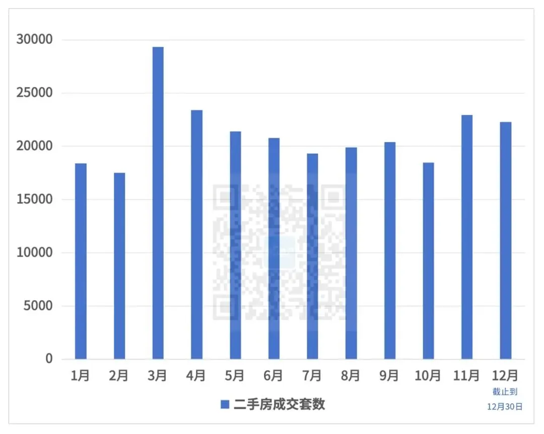 今年上半年上海二手房成交量一路上行,7月份开始回落,但到了11月又开始抬升,达到22943套,仅次于三四月份的小阳春。截至12月30日,12月上海二手房共成交22279套,锁定“暖冬”行情。