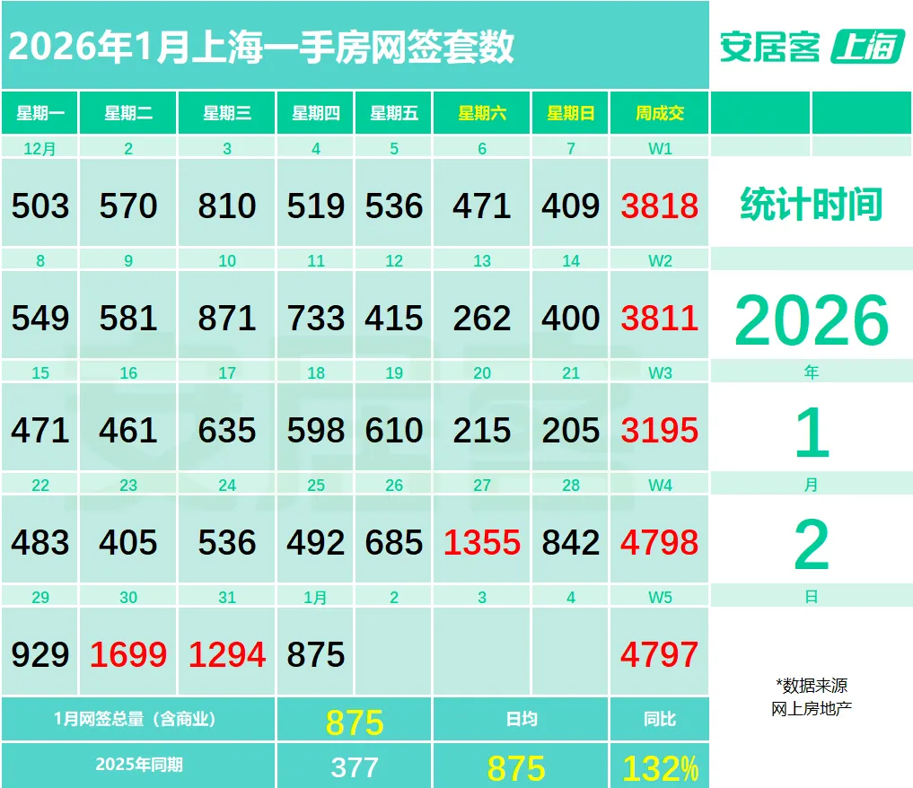 >新房875套,二手房183套!1月1日上海网签数据出炉!