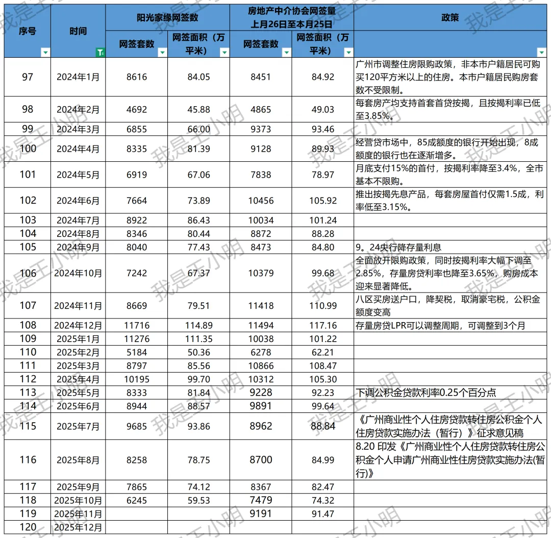 >广州楼市历年二手房成交数据和政策记录(更新至2025年11月)