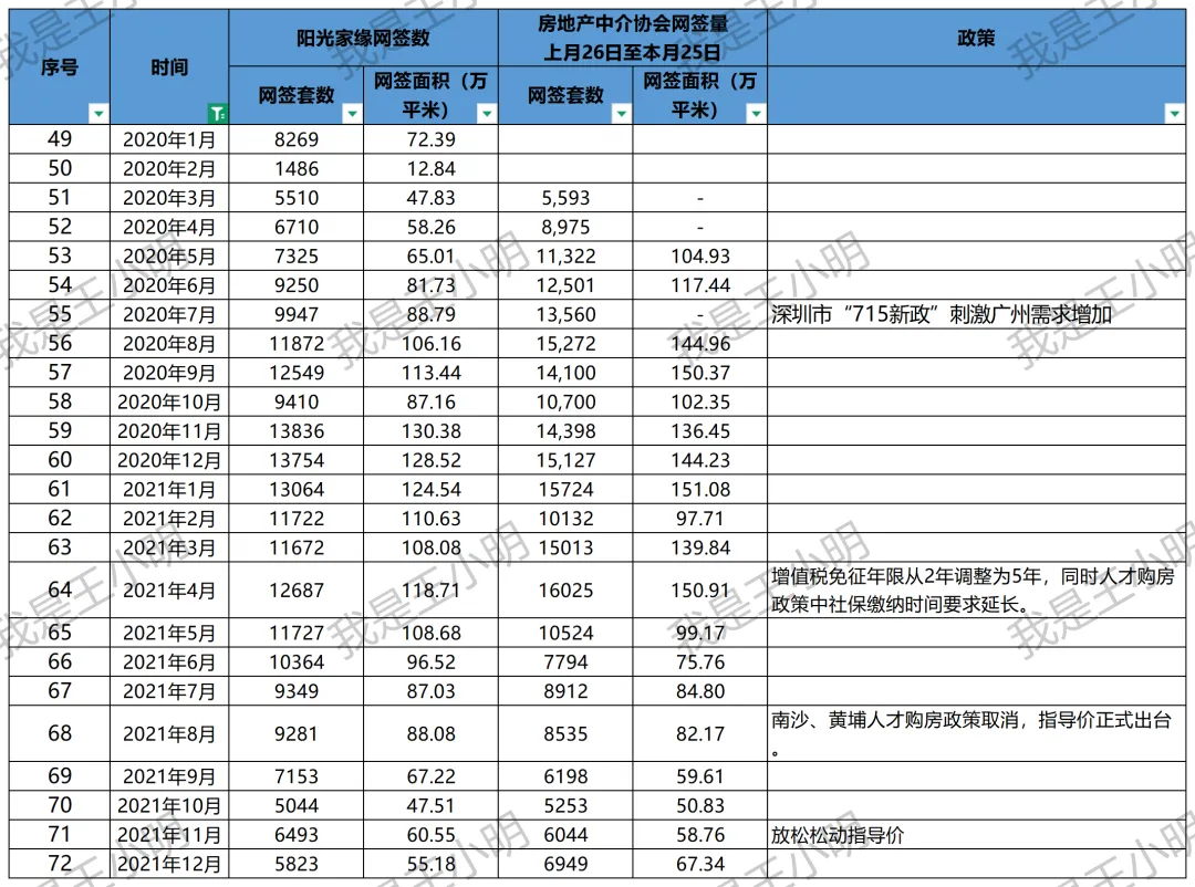 趁这次五一假期,花了一天时间,整理了广州有电子数据记录以来的二手房成交数据和相关政策,本次数据含了阳光家园和协会的两个数据。