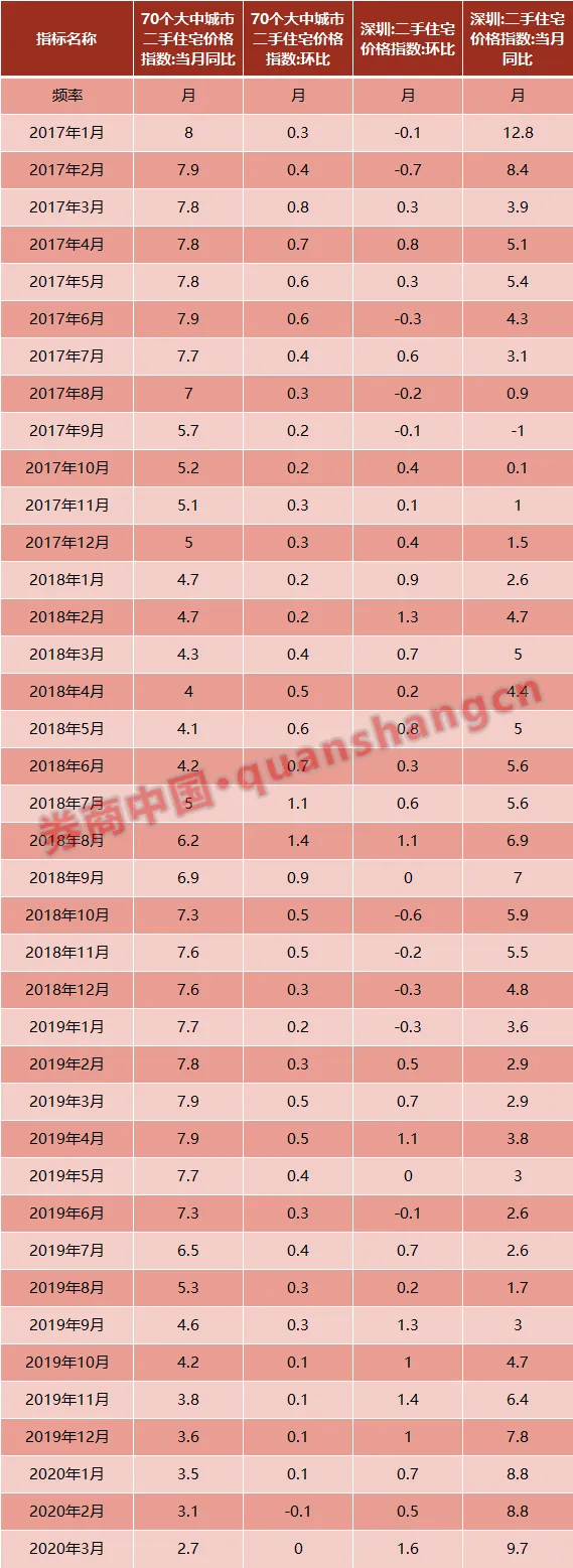 据wind数据,截至2020年3月份,深圳二手住宅价格指数同比已经连续上涨了30个月。而且进入到今年一季度之后,的确出现了加速上涨的势头。