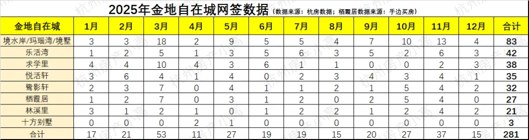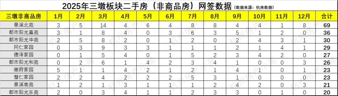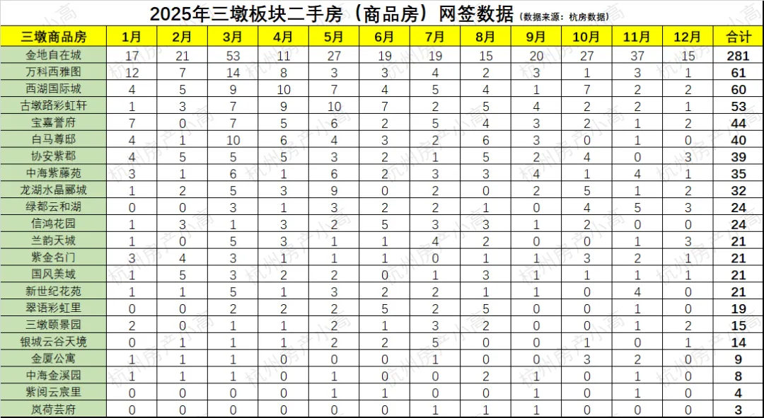 2025年杭州三墩二手房网签数据一览,金地自在城全杭州TOP3