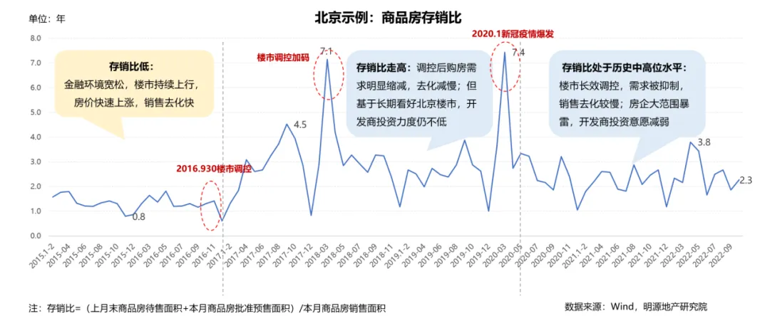 以北京市为例,2015年至今,北京商品房存销比经历了三个明显的阶段: