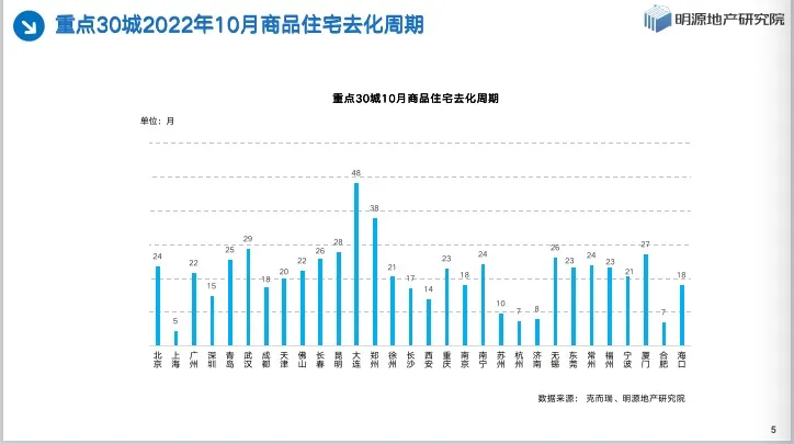重点30城2022年10月商品住宅去化周期