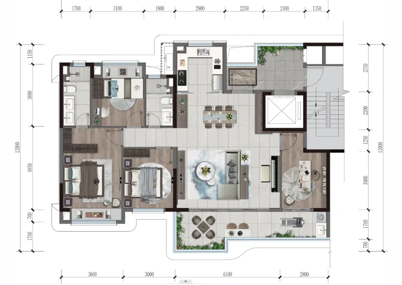 今年华润置地在成都落地的6个“润系”项目,为了在提升家庭核心区尺度的同时,不过多牺牲卧室空间,在公区上想了很多办法。