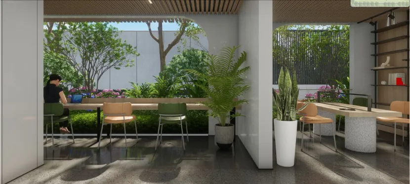 在进行景观设计时,就将大量的会客空间,改成了轻办公区,甚至配置了户外WiFi、公区插座等细节设计,功能性不输咖啡馆。