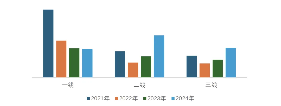 其中,一线城市交易量同比微降3%,二线城市增加98%,三线城市增加65%。