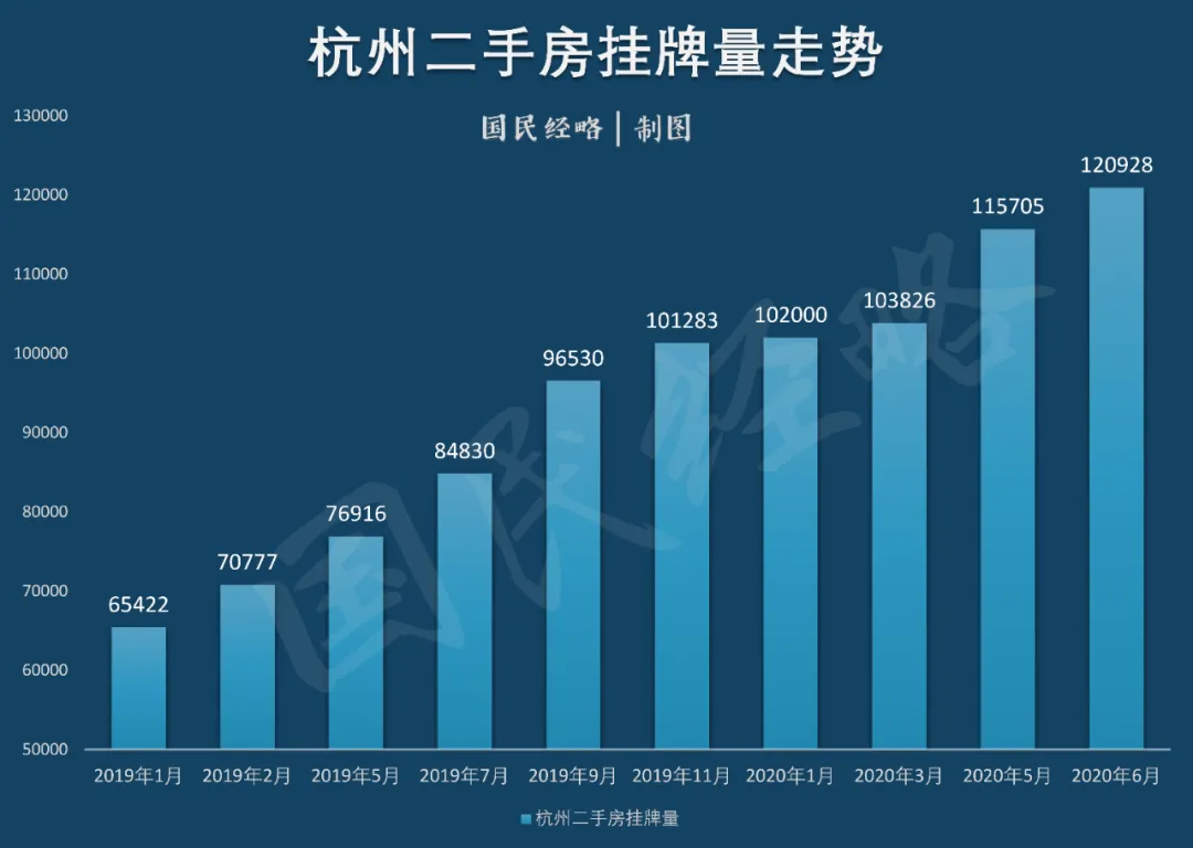 相比2019年初的6.5万套,一年半时间里,杭州二手房挂牌量接近翻倍。与之相对,在楼市相对正常的2019年,杭州全年成交量仅为8万套。