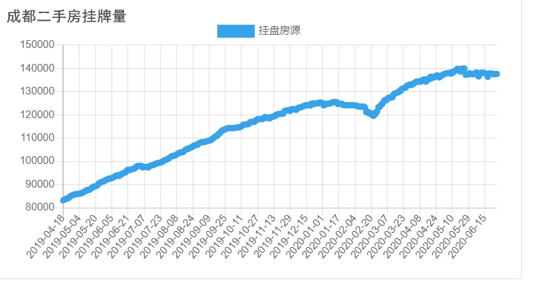 仅在贝壳平台,成都最新的挂牌量就已高达13.6万套,而2019年初仅为6万套。一年半时间,二手房挂牌量增长1.3倍,最近几个月每月新增房源3万套,而月成交不到1万套。