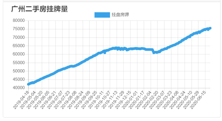 作为一线城市的广州,仅链家平台,二手房挂牌量就高达7.6万套,相比2019年初的3.1万套,飙增1.4倍。