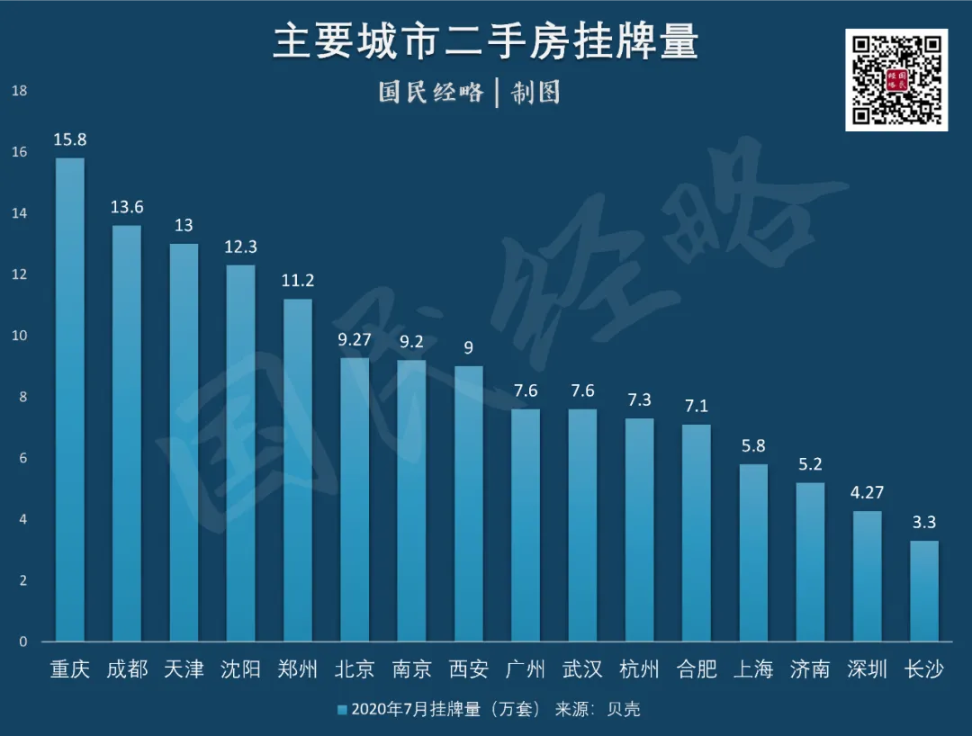 同时,这还只是一家平台的挂牌数量,其中部分高价房源由于“你懂的”原因不定时下架。考虑到整个市场,各个城市的二手房挂牌至少还要增加20%以上。