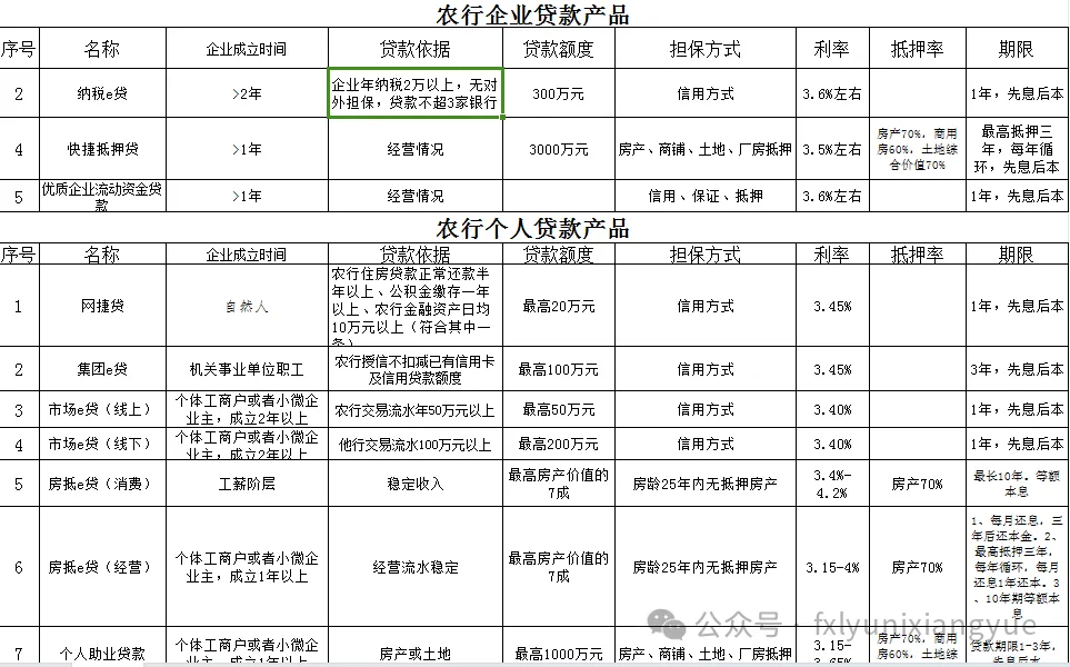 2.农行个人贷款:网捷贷,集团e贷,市场e贷,房抵e贷(消费,经营)个人助业贷款最高200万
