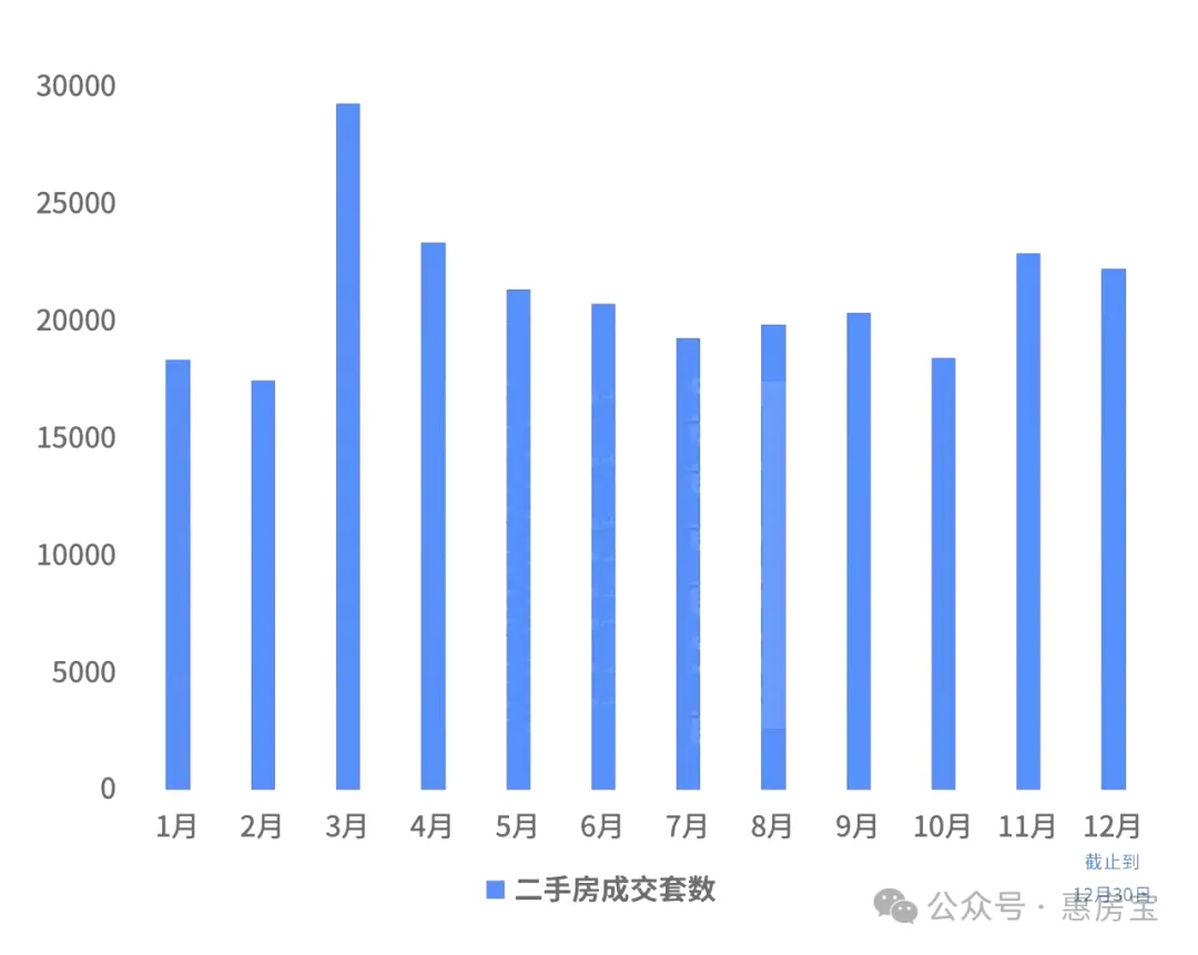 今年上半年上海二手房成交量一路上行,7月份开始回落,但到了11月又开始抬升,达到22943套,仅次于三四月份的小阳春。截至12月30日,12月上海二手房共成交22279套,锁定“暖冬”行情。