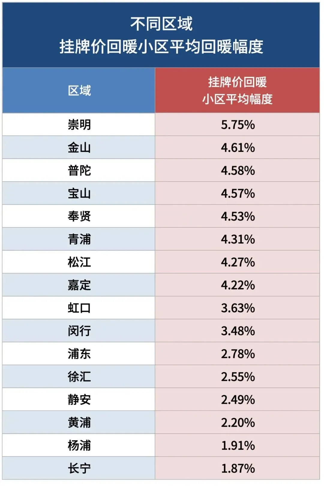 数据显示,近期上海有100多个小区,挂牌价已经出现回升。