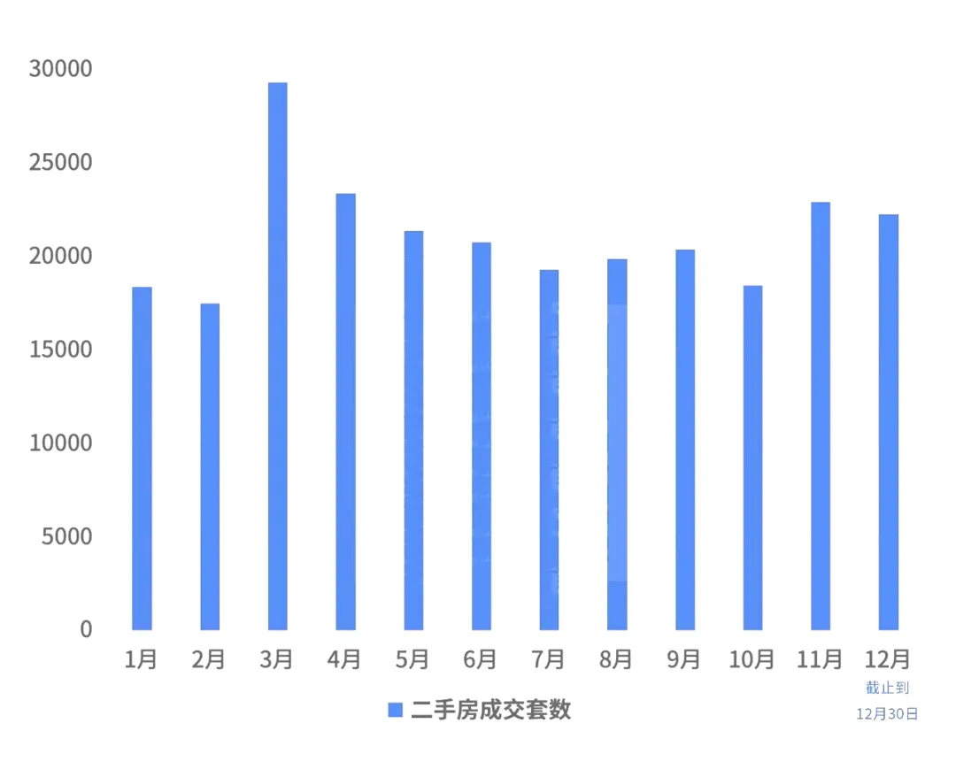 今年上半年上海二手房成交量一路上行,7月份开始回落,但到了11月又开始抬升,达到22943套,仅次于三四月份的小阳春。截至12月30日,12月上海二手房共成交22279套,锁定“暖冬”行情。
