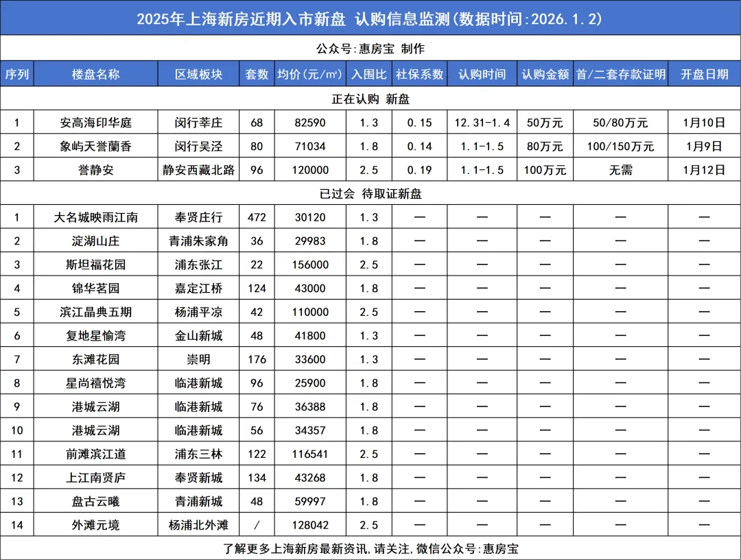 截至目前,上海新房 2025年上海新房近期3盘发布认购时间,14盘等待取证认购。
