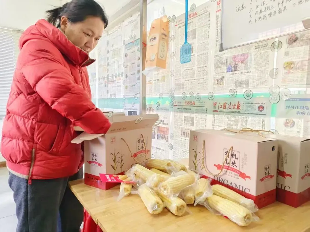 农户徐志娟一边麻利地打包真空玉米