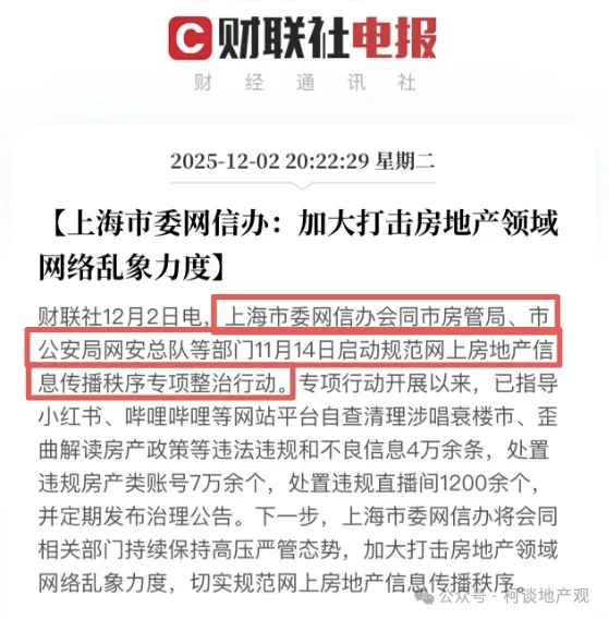 2025年12月,上海北京深圳都出手整治楼市黑嘴: