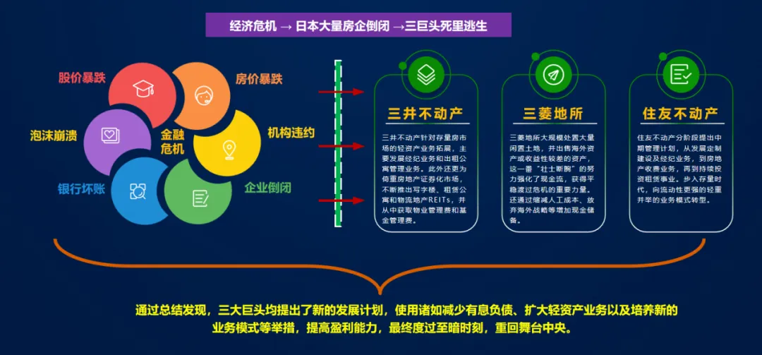 对照世界各国的房地产发展历程,日本地产有过轰轰烈烈的发展期,也经历了风起云涌的调整期,这对当前中国地产行业的发展有着较强的参考意义。在日本地产“失去的20年”中,依旧有三井、住友和三菱等企业通过代建等轻资产实现转型。