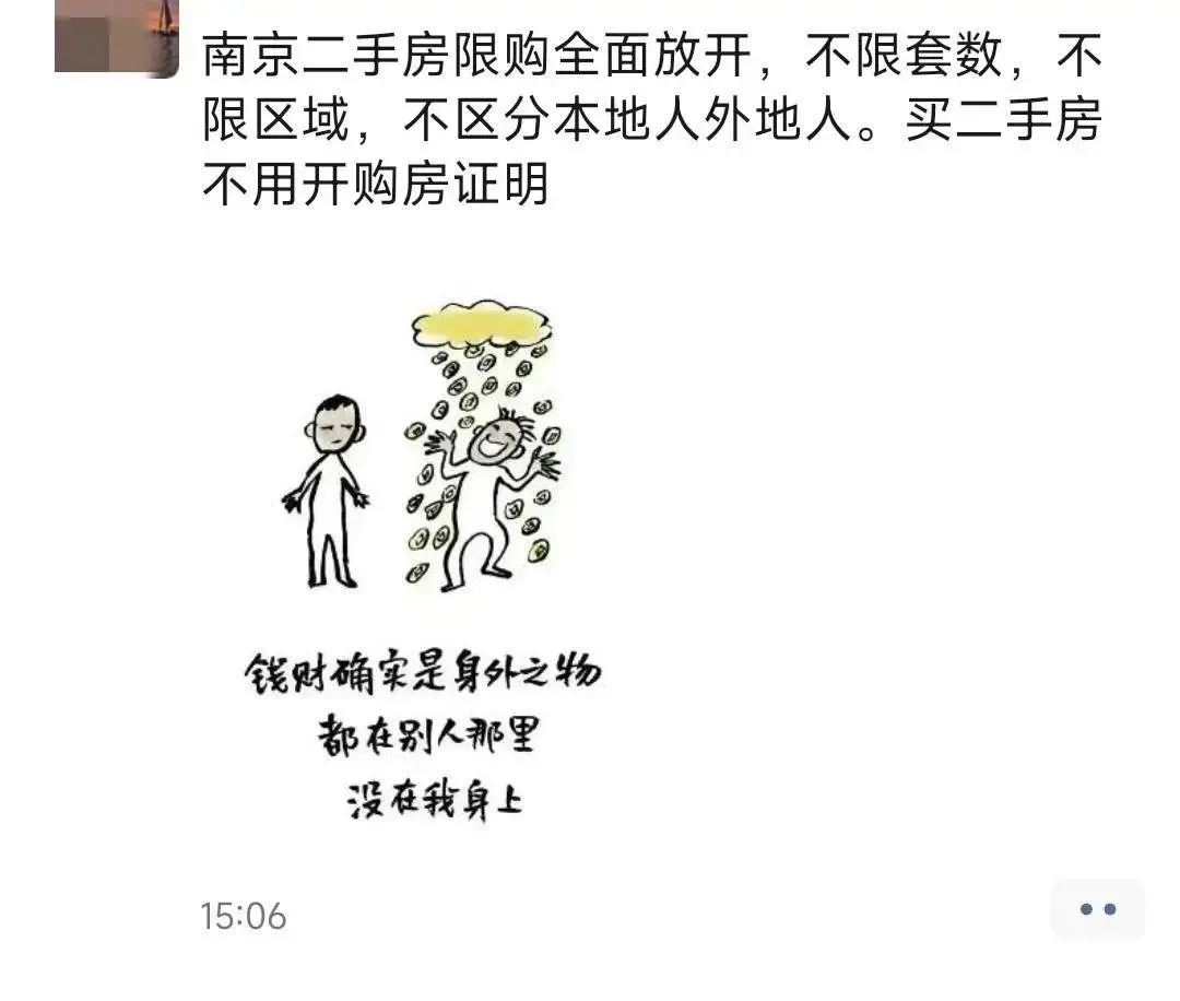 5月20日午后,记者在朋友圈里看到,众多南京房产中介人士纷纷发布消息称,南京二手房限购已经取消,不限套数和区域,也不分本地人外地人,也就是说,南京购买二手房不再需要购房证明了。