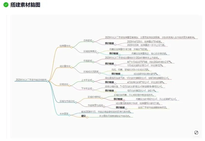 地产AI拟定的主题为:2025年长沙二手房市场分析挂牌量成交量与价格变化