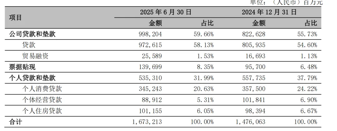 截至2025年6月末,其个贷不良率已经上行至1.86%:又以个人消费经营贷款贡献最大,不良率3.3%;其次为个人消费贷款不良率1.83%,个人住房贷款不良率0.71%。