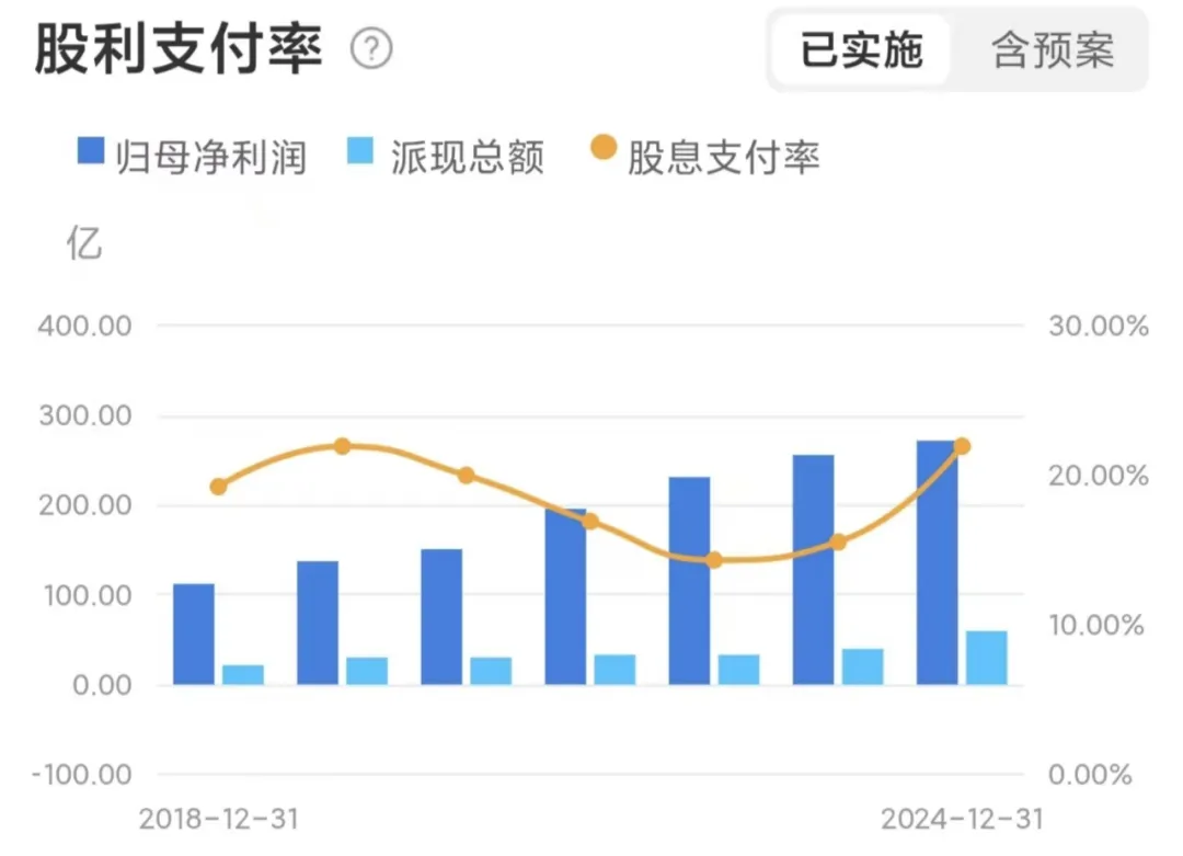 2024年,宁波银行拟向普通股股东每10股派现9元(含税),股利支付率(分红比例)21.91% ,为近三年最高,但排名在42家上市行中偏后。