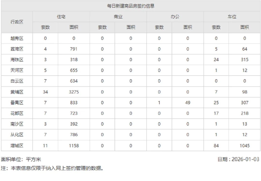 2026年1月3日新房网签数据
