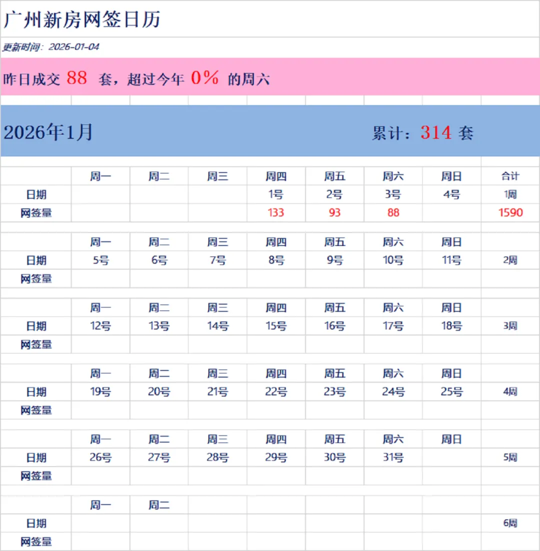 广州新房和二手房网签数据:每日数据持续更新-2026年1月3号
