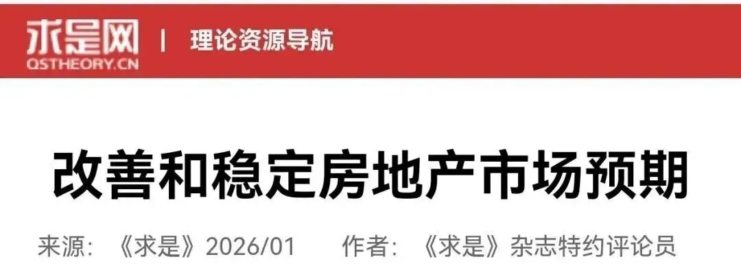 今年1月1日被誉为最高级中央党刊的《求是》,发布最新《改善和稳定房地产市场预期》文章!信息量巨大!其中关于房地产的重要性作了明确,为2026年房地产市场定下基调!房地产带有显著的金融资产属性、国民经济的重要产业和居民财富的重要来源,仍然是支撑国民经济的基础产业...大转向要来了!1、房地产带有显著的金融资产属性,关联性强、涉及面广、社会关注度高,加强预期管理对稳定房地产市场具有特殊重要性。2、房地产业是国民经济的重要产业和居民财富的重要来源,在国民经济发展中的地位举足轻重。3、促进房地产市场健康稳定发展,关系我国经济大盘稳定。4、部分项目、部分城市出现局部供过于求情形,导致房地产销售和价格出现较大幅度回落,对实体经济的需求端、资产负债表的资产端和金融机构的负债端产生了较大影响。5、政策预期上,政策力度要符合市场预期,政策要一次性给足,不能采取添油战术,导致市场与政策陷入博弈状态。6、政策协调上,强化政策一致性评估,房地产受经济发展阶段、宏观经济形势、居民收入增速等整体预期影响明显,要以更好满足居民刚性需求和多样化改善性住房需求为目标,取消相关限制性措施,确保新老政策相互配合,确保房地产政策与其他宏观政策取向一致。7、住房是普通家庭最大、最重要的资产,住房价格直接关系群众利益,更受群众关注。近年来,我国房地产市场供求关系发生重大变化,部分项目、部分城市出现局部供过于求情形,导致房地产销售和价格出现较大幅度回落,对实体经济的需求端、资产负债表的资产端和金融机构的负债端产生了较大影响。房地产带有显著的金融资产属性,关联性强、涉及面广、社会关注度高,加强预期管理对稳定房地产市场具有特殊重要性。2025年底召开的中央经济工作会议强调着力稳定房地产市场并作出重要部署,为促进房地产市场平稳健康发展、防范化解系统性风险提供了方向指引。要全面辩证认识当前房地产市场面临的形势,深入贯彻落实党中央决策部署,切实改善和稳定房地产市场预期,为国民经济平稳运行提供有力支撑。