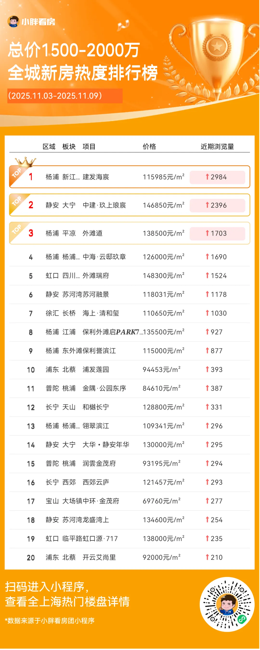 上海新房热度榜单发布!上海昨日二手房网签990套!新房开盘日历&认购监测每日更新!