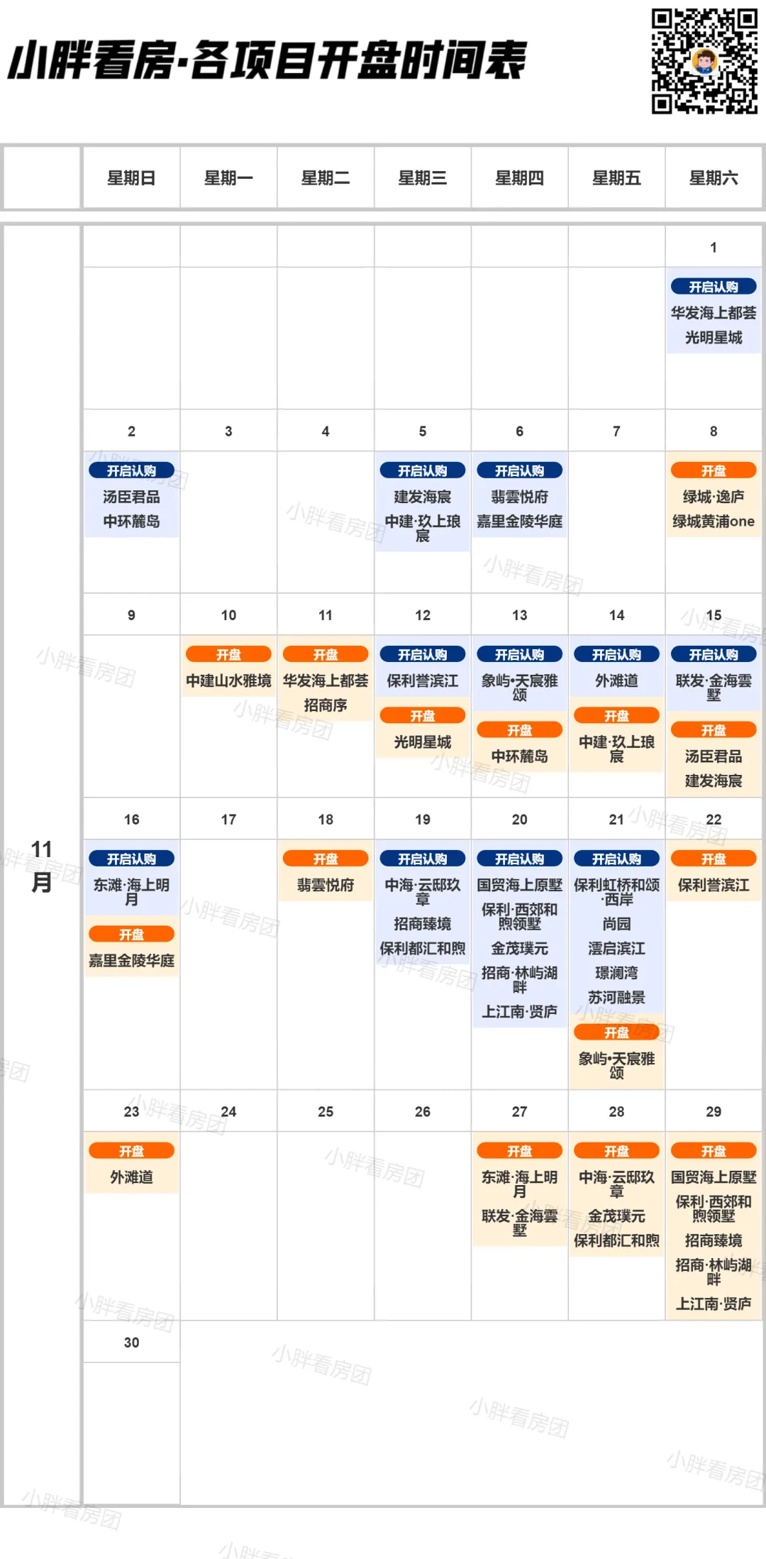 金茂璞元、招商·林屿湖畔、上江南·贤庐、国贸海上原墅、保利·西郊和煦领墅,11月20日开启认购,至11月24日;