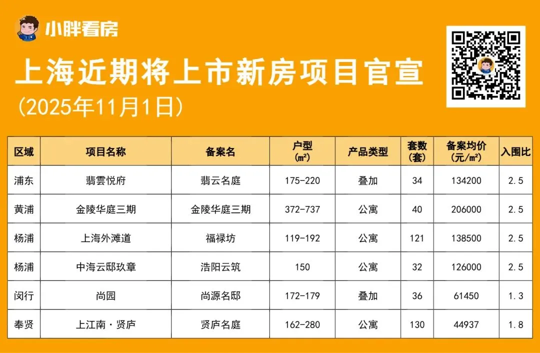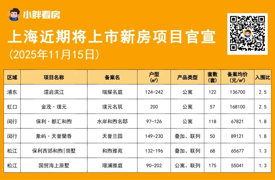 澐启滨江、保利虹桥和颂·西岸、尚园、苏河融景、璟澜湾,11月21日开启认购,至11月25日;