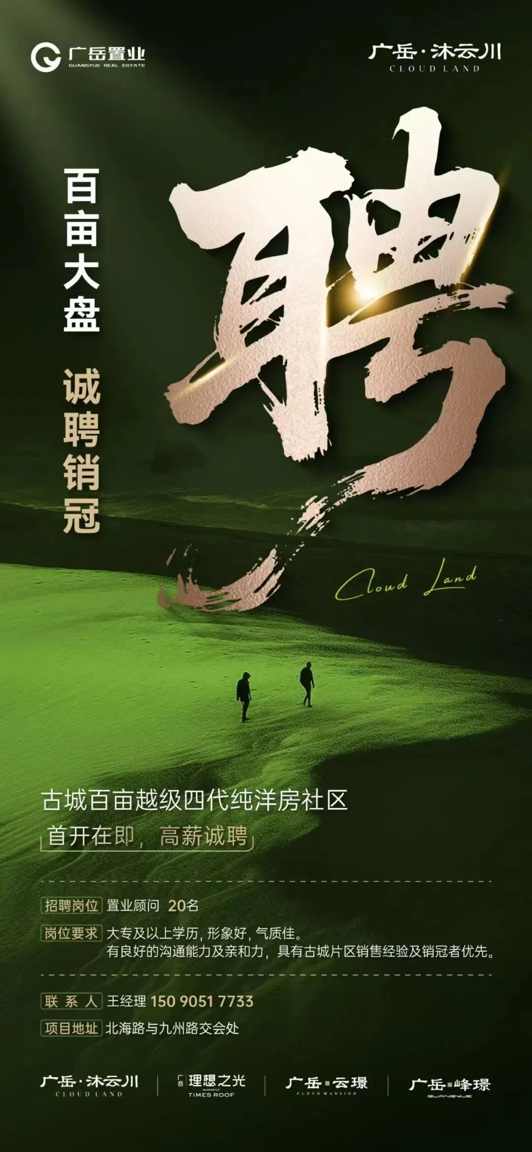 招聘岗位:高级置业顾问5名、渠道专员5名薪酬待遇:高底薪、高佣金、高奖励、完善福利岗位要求(高级置业顾问):