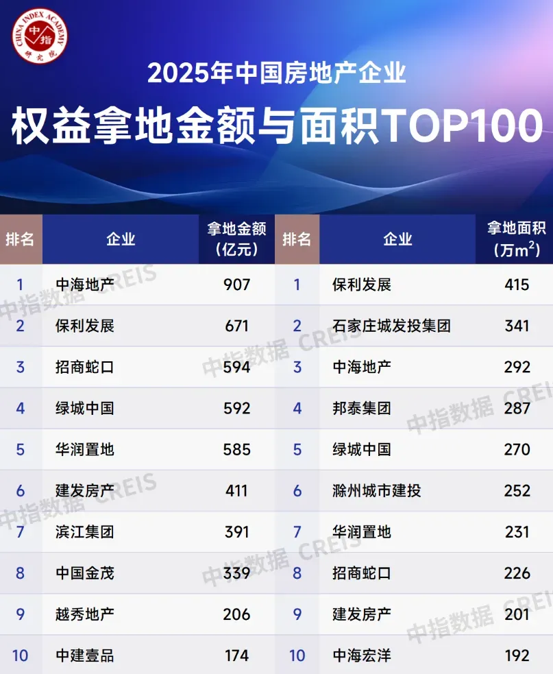 百强房企中,14家央企的拿地金额占比,已经突破50%,比2024年跳涨7%,拿地金额同比增长20%。