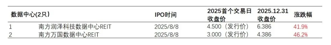 最大涨幅:来自两只数据中心REITs上市后涨幅惊人,超过40%,得益于大厂AI叙事。
